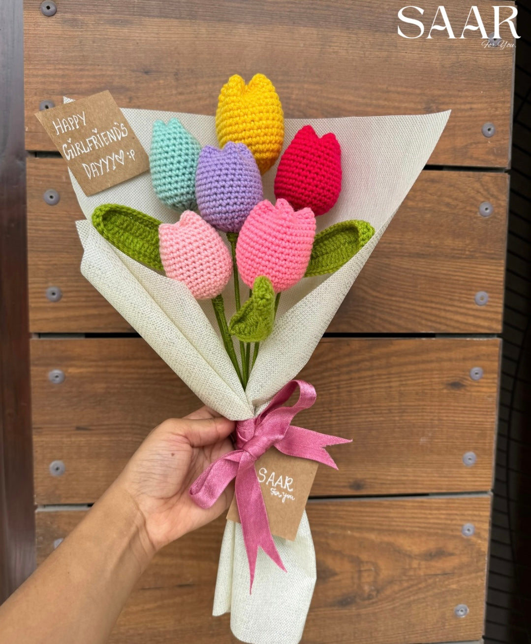 Say hello to Rainbow Bliss Bouquet, a delightful crochet bouquet featuring different colored tulips, each one symbolizing joy, grace, and new beginnings. From soft pastels to bold hues, this bouquet brings a burst of color and calm wherever it goes.