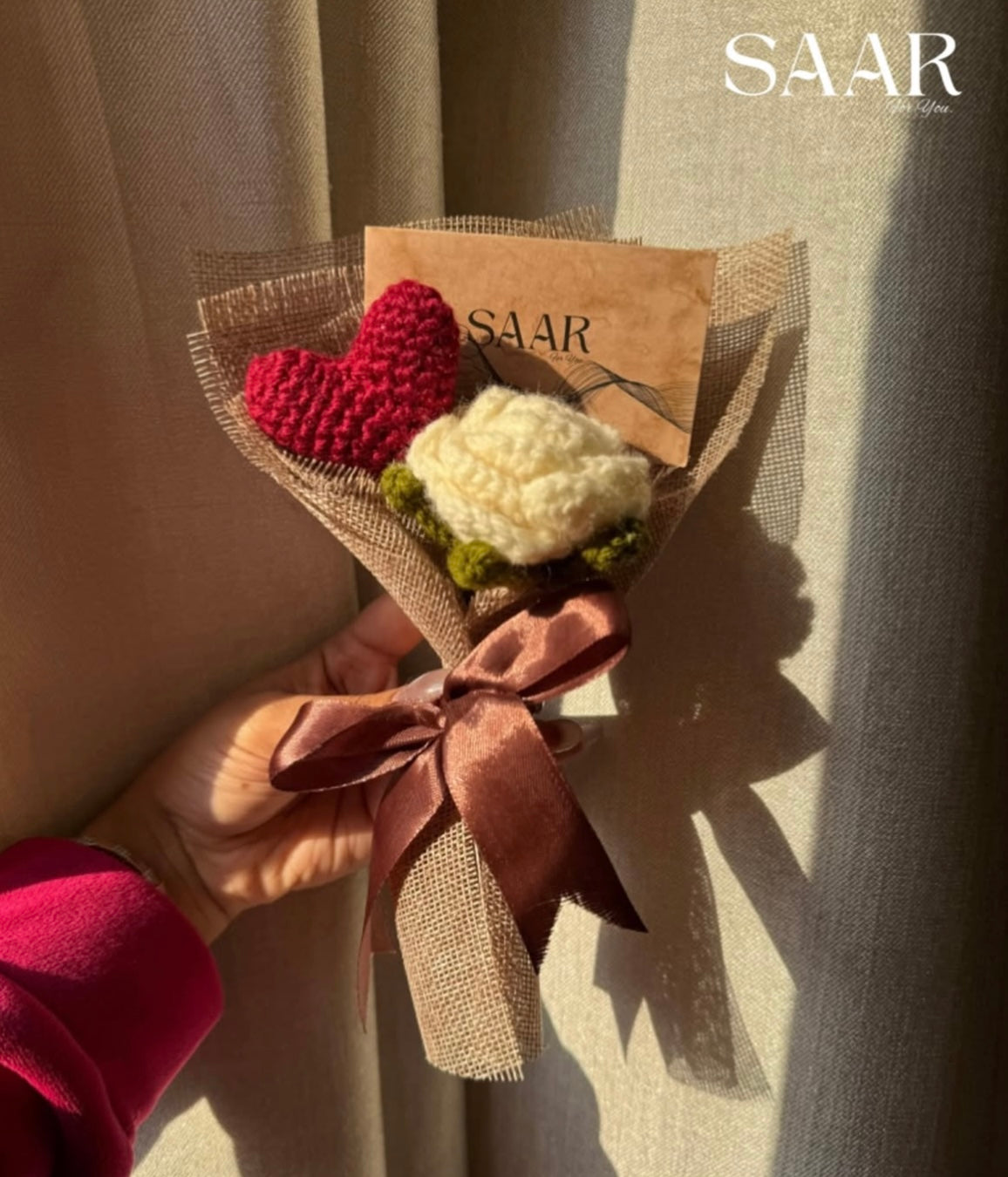 Delicate, charming, and full of meaning, Mini Bouquet is a lovely little gesture that says "you matter to me." Featuring a soft cream crochet rose and a handcrafted heart, this bouquet is perfect for anniversaries, or just-because moments.