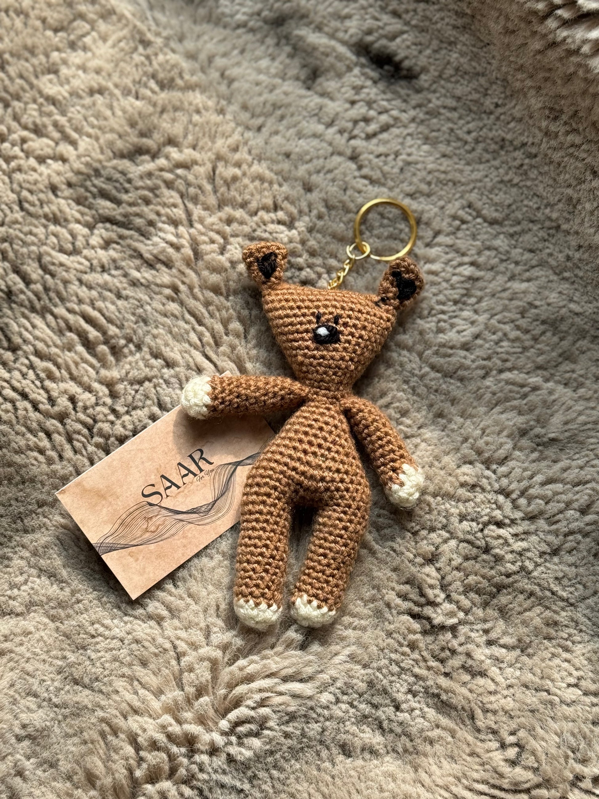 - Every detail of the key chain is hand crocheted using wool, by the talented women artisans.