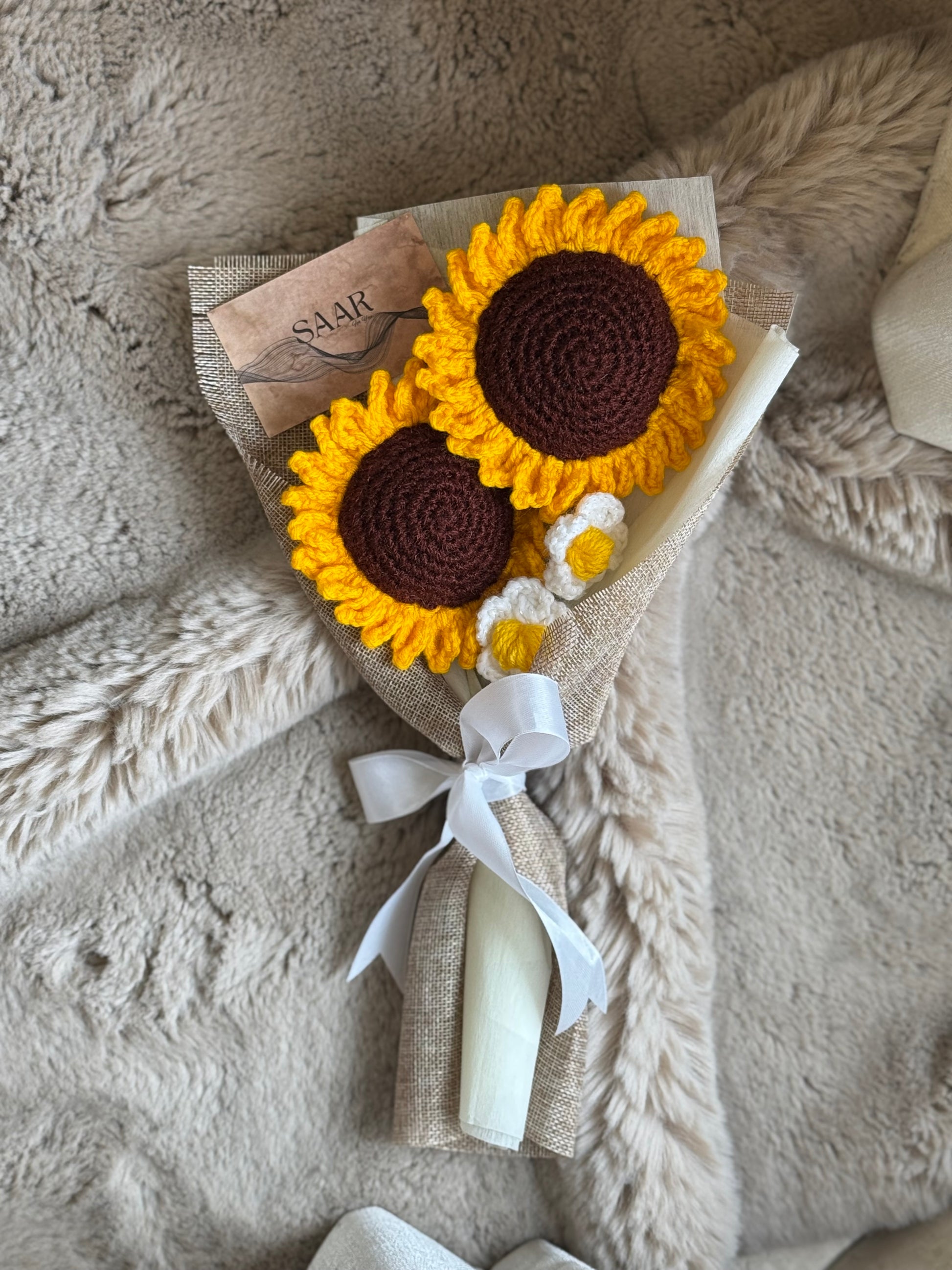 Brighten someone’s day with this handcrafted pair of crochet sunflowers, made with love by our talented grannies. Each bloom is a symbol of warmth, positivity, and resilience – just like the women behind our brand.