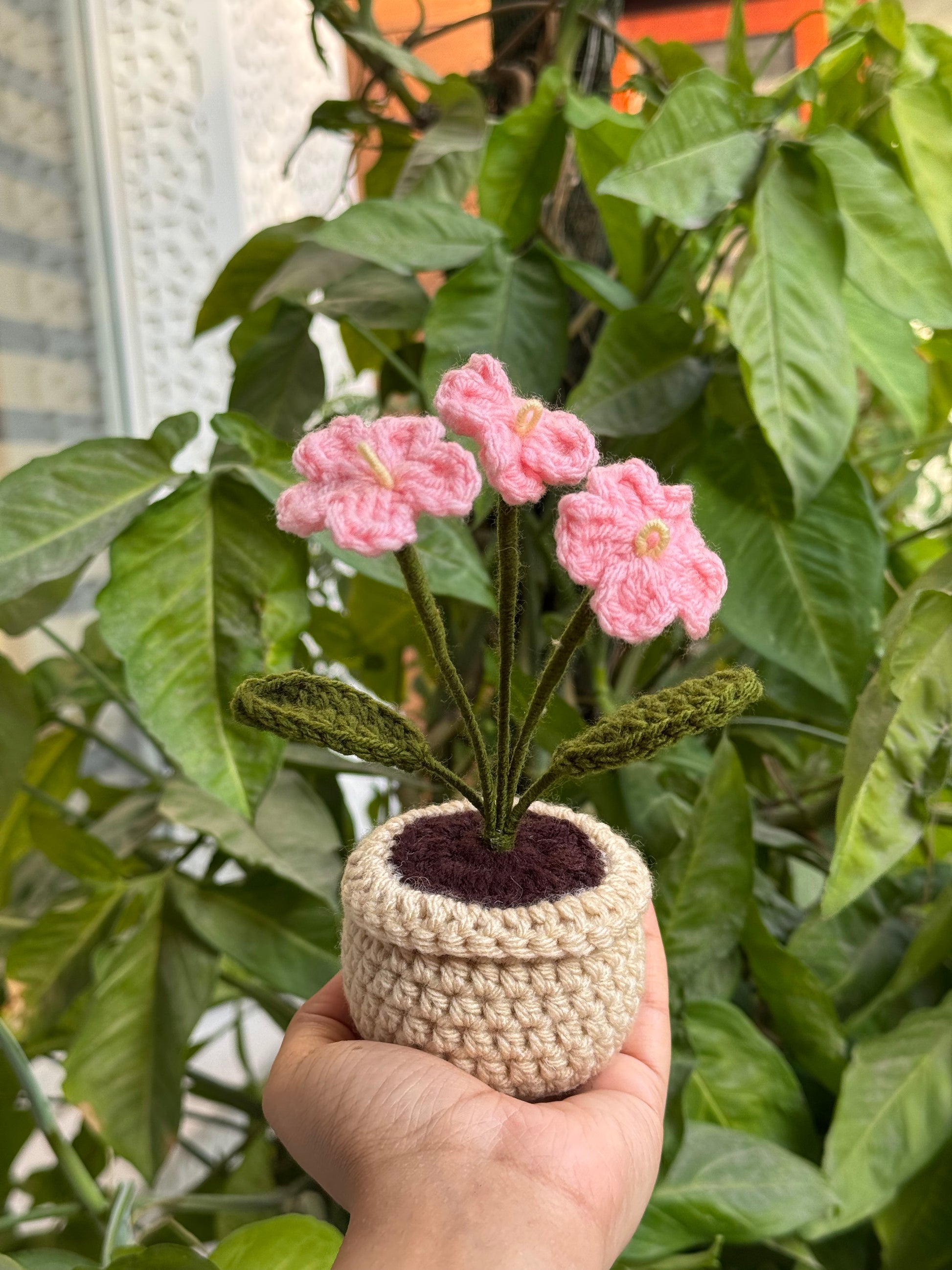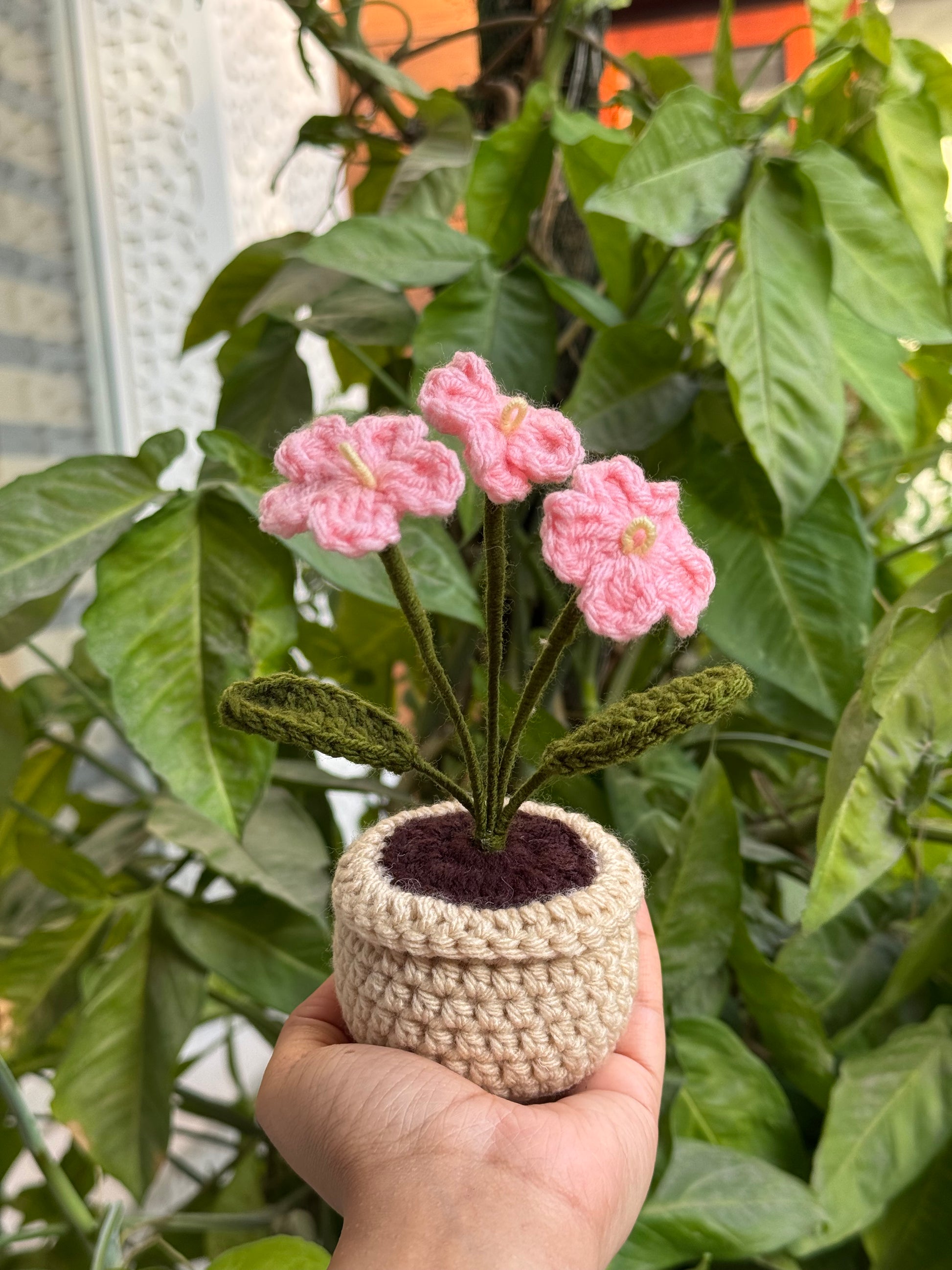 - It comes with a hand crocheted pot, a 3 touch me nots and leaves.
