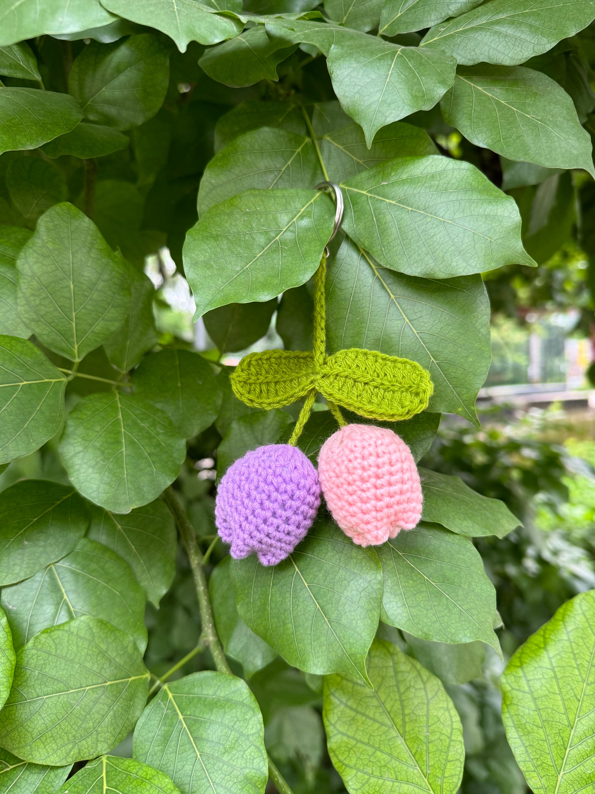 Delicate, dainty, and full of handmade beauty, Tulip Bells, our elegant crochet keychain is floral duo bringing a soft touch of spring wherever you clip it.